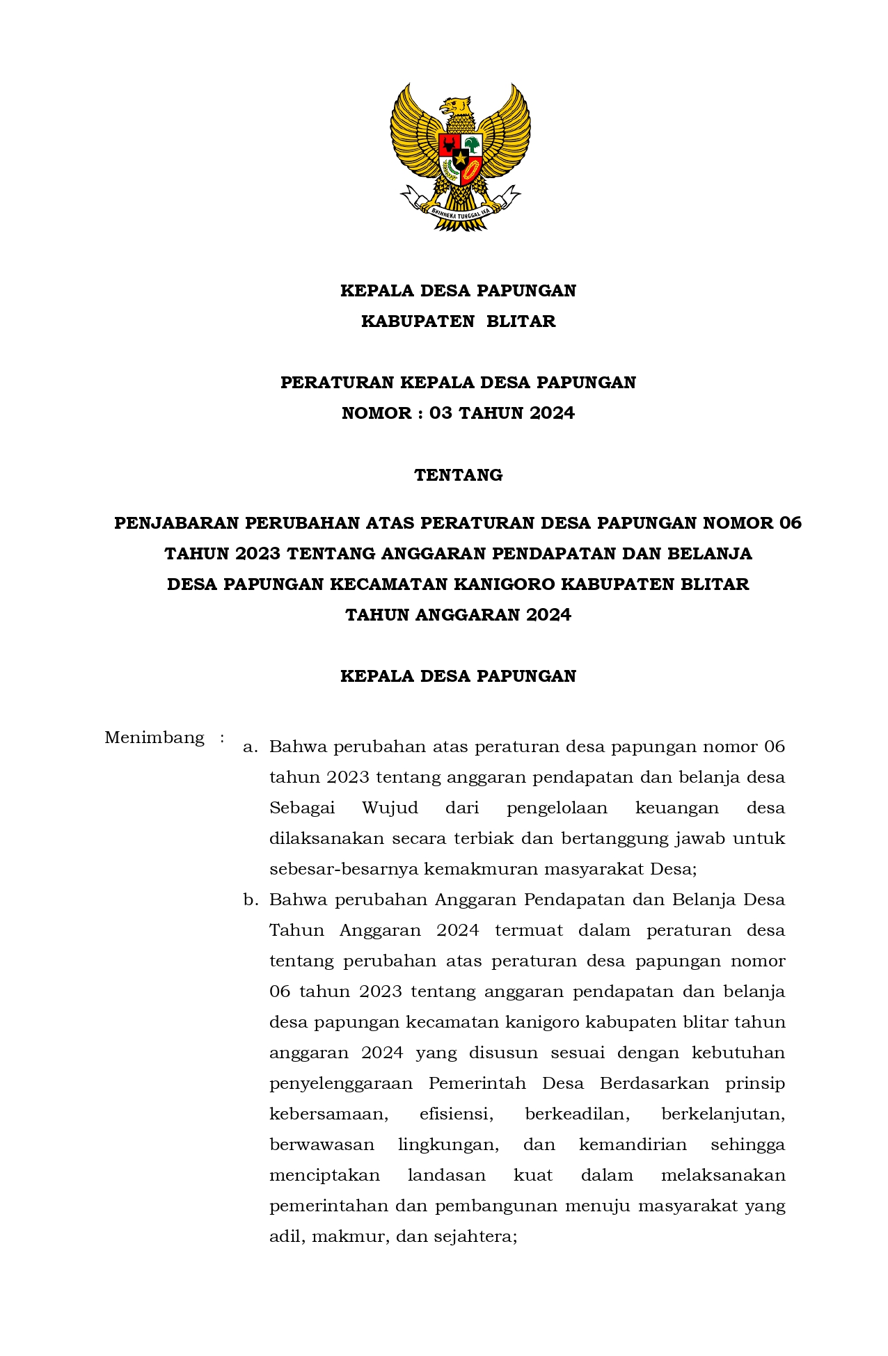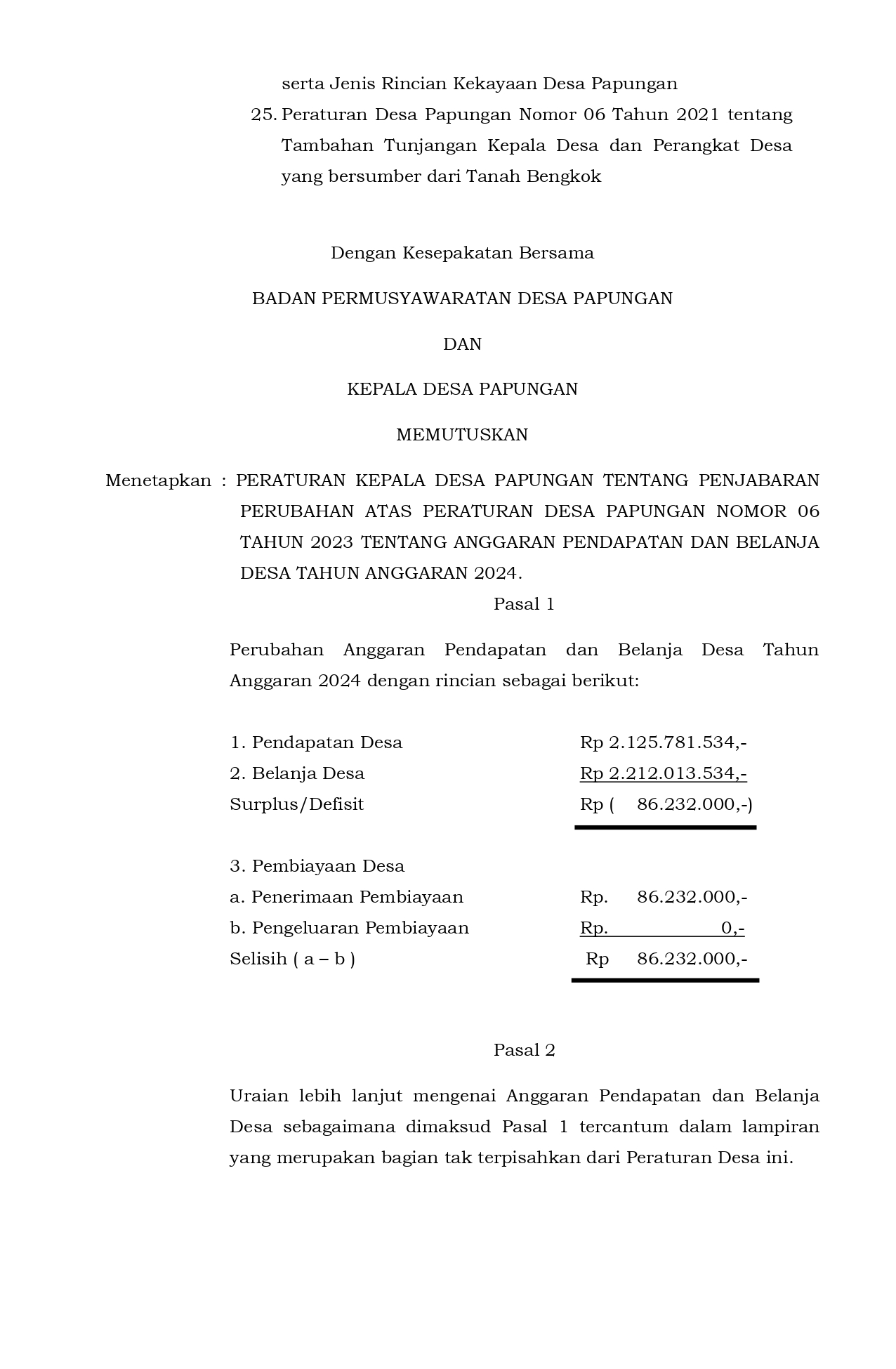 Pelaksanaan Anggaran Pendapatan dan Belanja Desa Tahun Anggaran 2024;